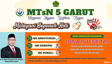 Sebagai bagian dari upaya mewujudkan tata kelola lembaga pendidikan yang bersih, transparan, dan berorientasi pada pelayanan publik, MTsN 5 Garut secara konsisten berkomitmen membangun Zona Integritas (ZI). Komitmen ini merupakan langkah nyata menuju Wilayah Bebas dari Korupsi (WBK) serta Wilayah Birokrasi Bersih dan Melayani (WBBM).