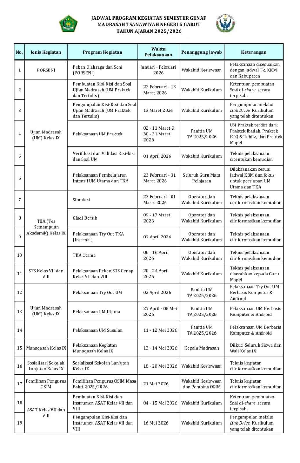 TAHUN PELAJARAN 2025/2026